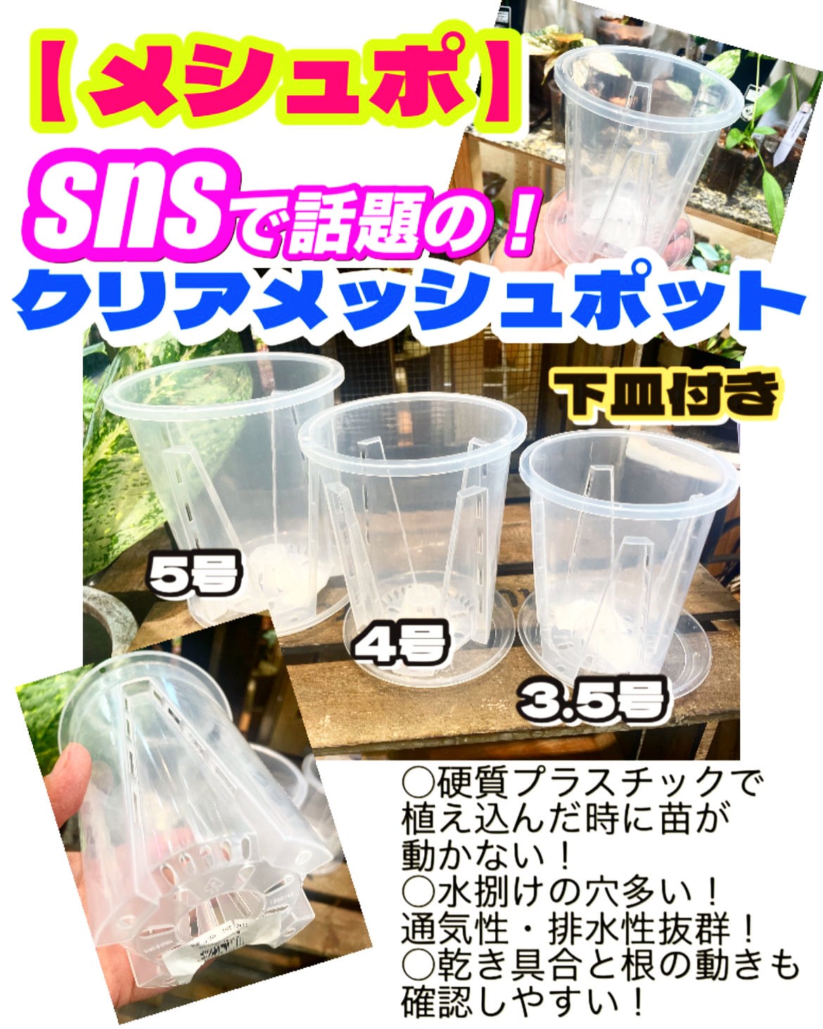 (5号)SNSで話題の!クリアメッシュポット『メシュポ』 下皿付き