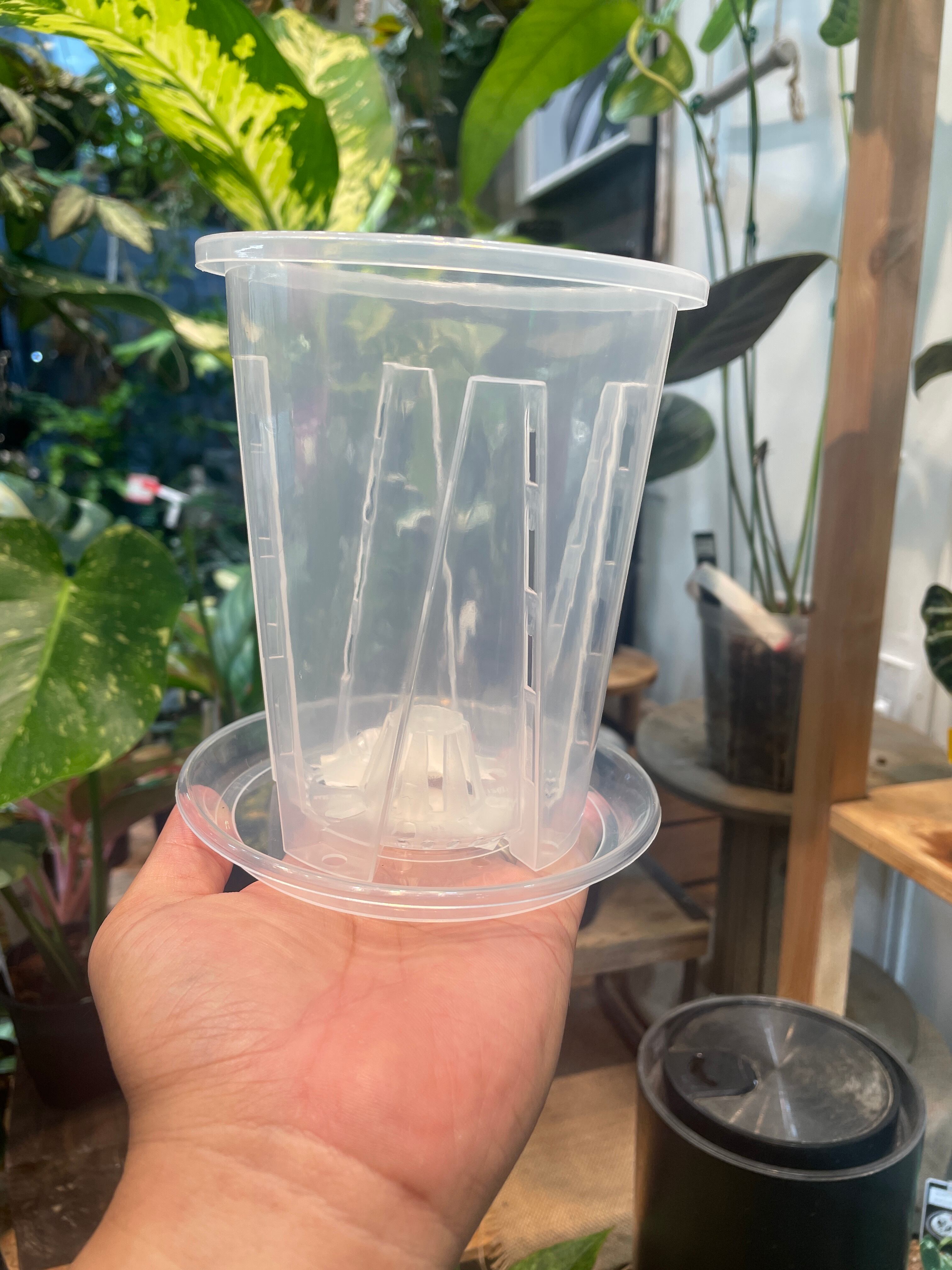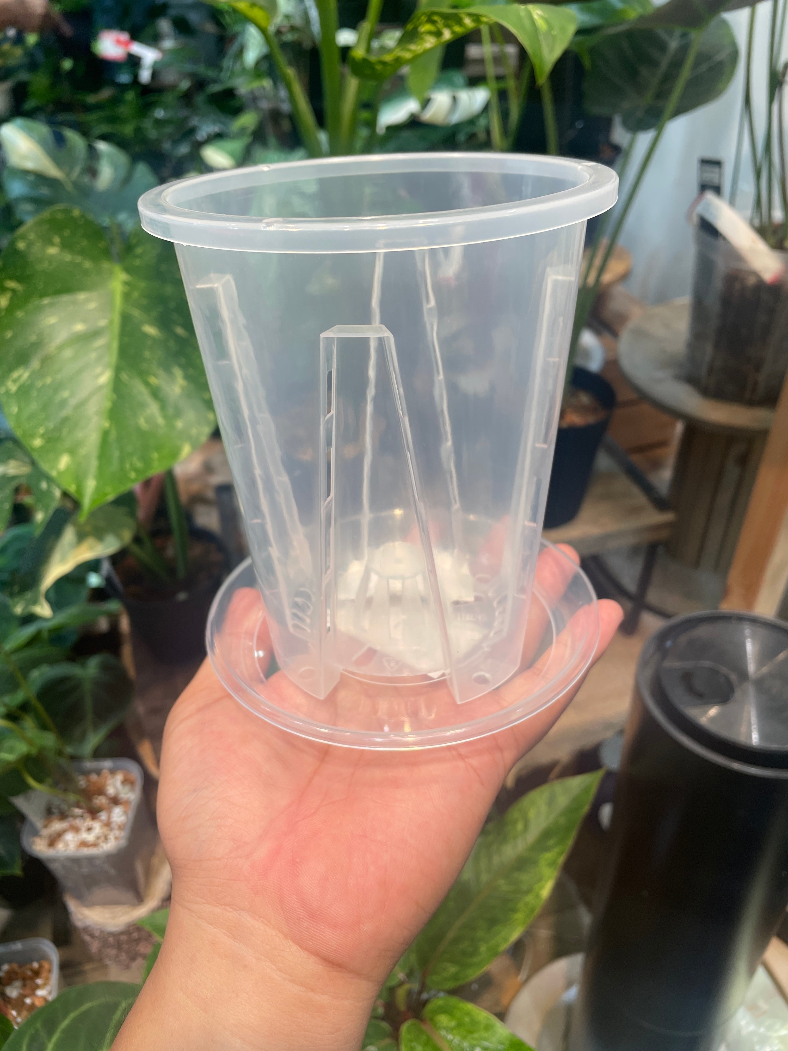 (3.5号)SNSで話題の!クリアメッシュポット『メシュポ』下皿付き